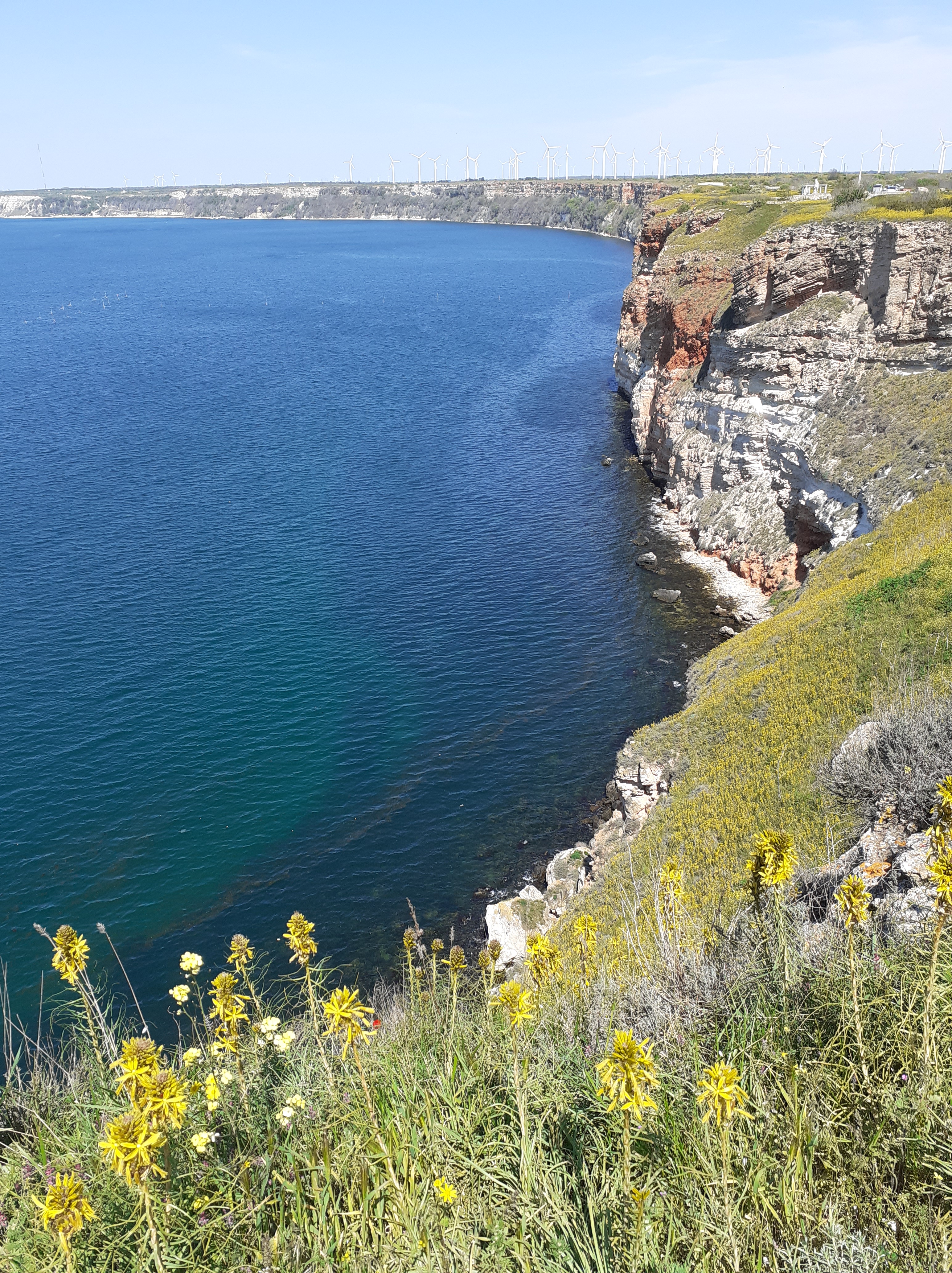 Orașul este unul mic situat pe coasta Bulgariei. Traseul a presupus trecerea pe la Capul Kaliakra pe care nu-l recomand decât dacă aveți un partener de călătorie răbdător, dispus să se oprească ori de câte ori vreți să faceți poze cu promontoriul de 80 m. Pentru că asta e acolo: o faleză înaltă și abruptă, stânci care se văd prin apa albăstră-turcoaz și multe, multe flori care cresc în voie fără a deranja pe cineva, nici măcar pe tipii de la Hornbach care oricum și-au schimbat între timp abordarea de business.